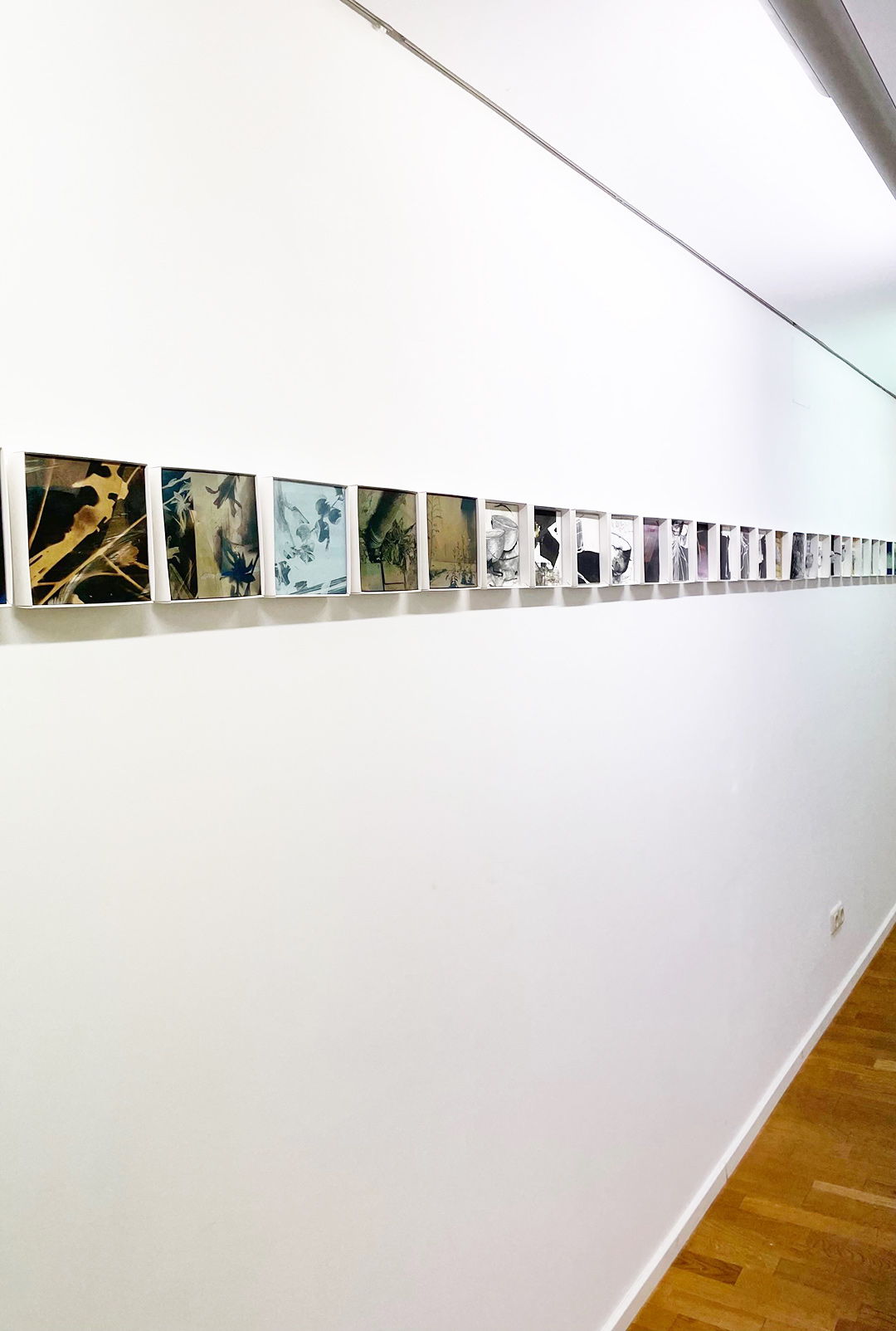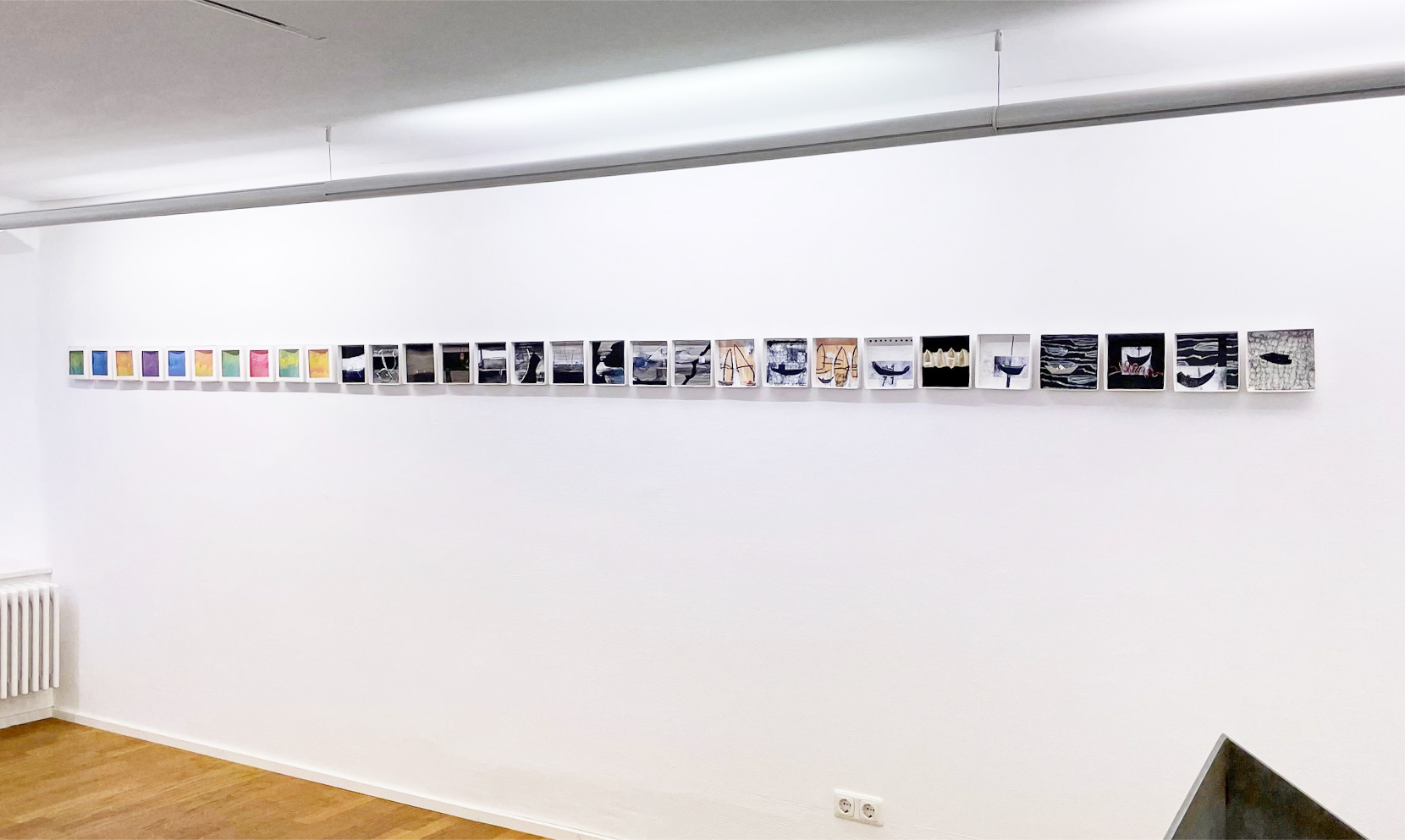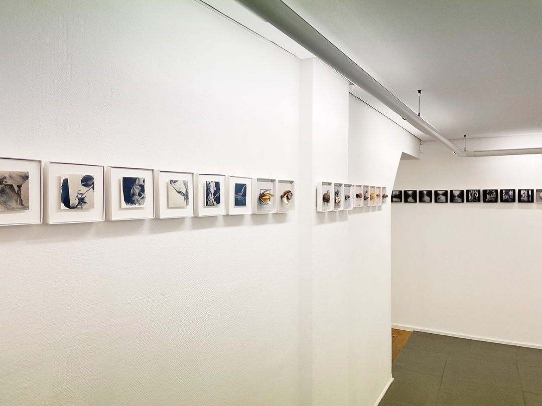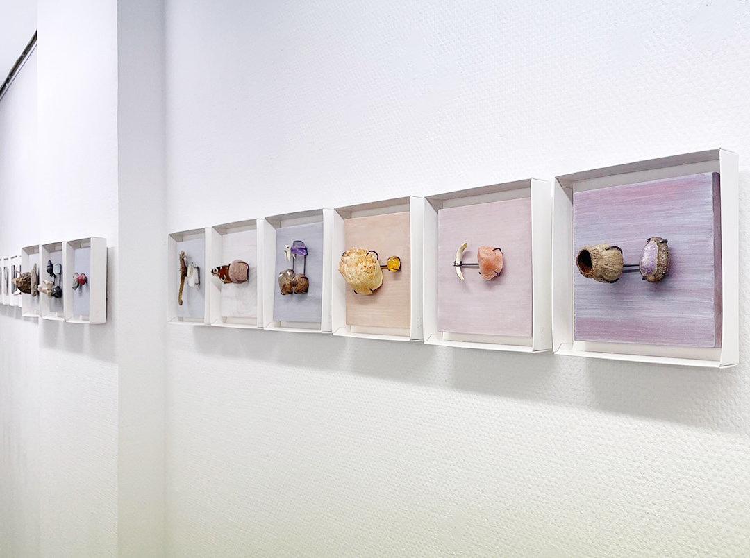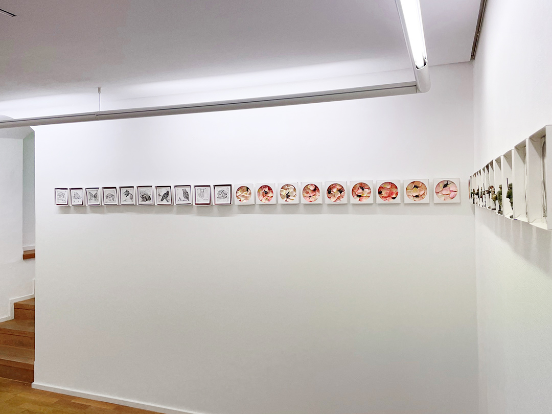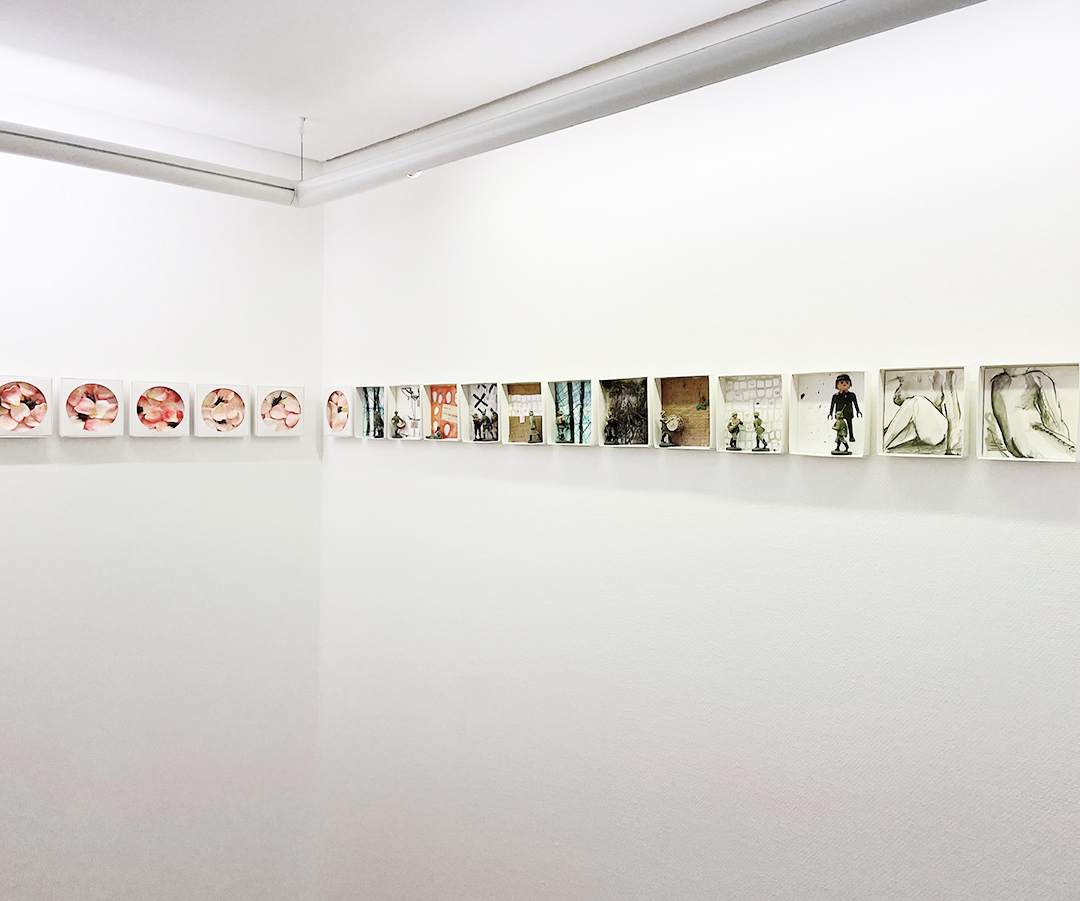 Es werden insgesamt 300 kleine Kunstwerke gezeigt, die an eine Art Band durch die Ecke Galerie laufen. Jede Künstlerin hat 50 Werke gestaltet mit verschiedenen Techniken: Installationen, dreidimensionale Figuren, Zeichnungen, Malereien, Radierungen und Intagliotypien.