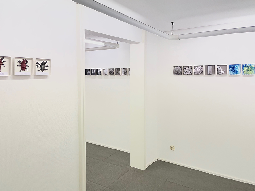 Enstanden ist die Ausstellung „Nahaufnahme“, die in ihrer Präsentionsform wohl sehr besonders ist. Man muss nah genug an die Werke herangehen, um die einzelnen Welten zu erkennen, die den Betrachter in ganz inniger Art und Weise bannen.